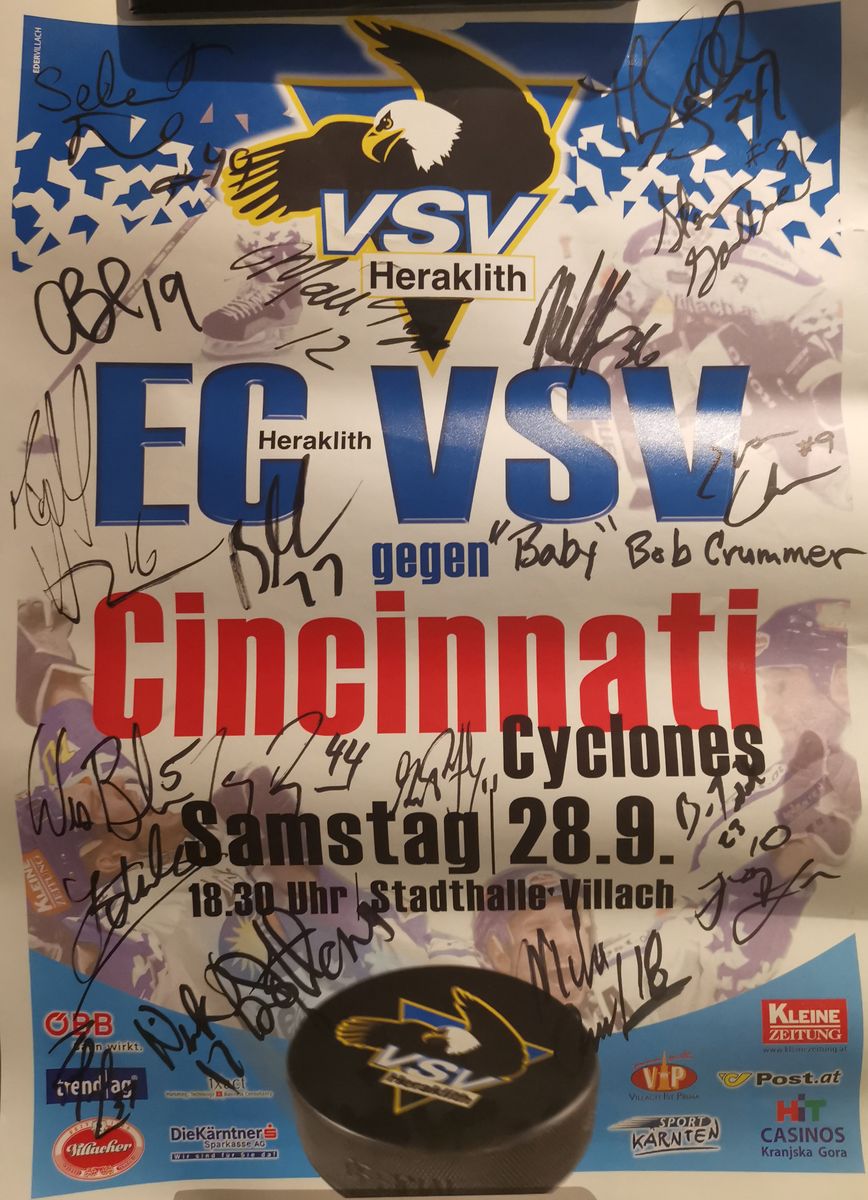 Ich kann mich dunkel daran erinnern, dass es vor vielen jahren ein testspiel zwischen dem vsv und den cincinnati cyclones gegeben hat. Leider weiß ich nicht mehr in welcher saison das war oder wie das ergebnis war. Vl kann mir da einer oder mehrere weiterhelfen.