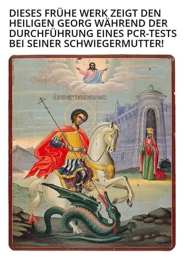 Verbreitets bitte keinen Blödsinn. Der heilige Georg testet da den Lindwurm, nicht seine Schwiegermutter. So stand es auch im "Original" auf Twitter ^^