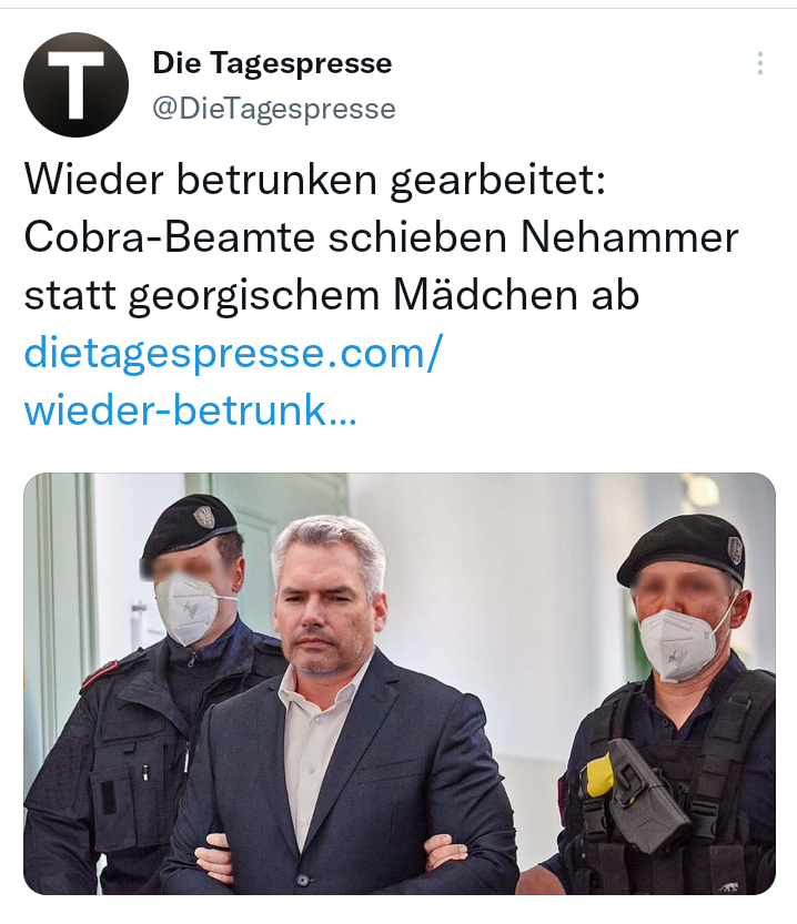 Wäre der grüne Herr Vizekanzler mit dem Lastenfahrrad gefahren, wie es seine Parteifreundin Gewessler den einfachen Bürgern unermüdlich predigt, statt mit dem richtig richtig schweren SUV, wäre das alles nicht passiert.