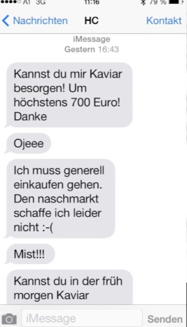 Sollten wir den HC Strache nicht einladen, hier im FORUM mitzumachen? Seine Einkaufslisten, die er seinem Bodyguard = Schani geSMSst hat, zeigen, dass er einer von uns ist (bei Kaviar zB die ewig alte Schmerzgrenze bei 10.000 Schülling und bei Bier nie mehr als 3 Liter).