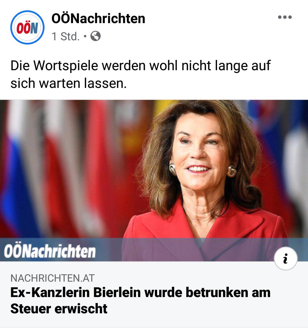 3. Und heute titelt über die Ex-Präsidentin des Verfassungsgerichtshofs und Ex-Bundeskanzlerin: "Ein Bierlein zu viel: Ex-Kanzlerin musste Schein abgeben!"