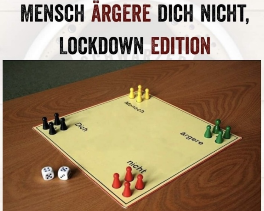 Das ist komplett frei erfunden - ohne FFP2 Maske in Übergröße und bei tiefroter Corona-Ampel!