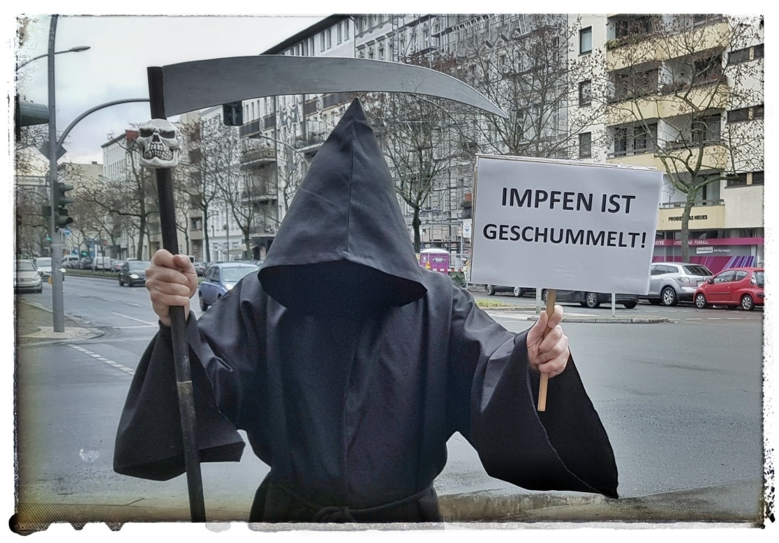 Das ist komplett frei erfunden - ohne FFP2 Maske in Übergröße und bei tiefroter Corona-Ampel!