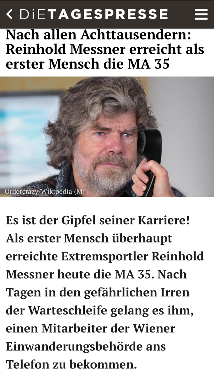 "Er einen Meter zurückgesprungen und dabei den Nachbartisch auch gleich noch abgeräumt. Quasi in einem Aufschrecken. Ich daraufhin gemeint: 'Zahlen, Lois! Haatschiiiii!' Worauf er mich rausgeworfen hat. Ich sei heute eingeladen, solle aber bitte nimmer kommen."
