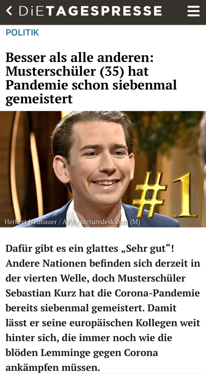Das nennt man Leben in einer (türkisen) Parallelwelt. Einfach mal unverfroren Dinge behaupten, die nicht der Realität entsprechen und hoffen, dass es das dumme Stimmvieh frisst. Pandemie gemeistert, für Geimpfte vorbei, blablabla....