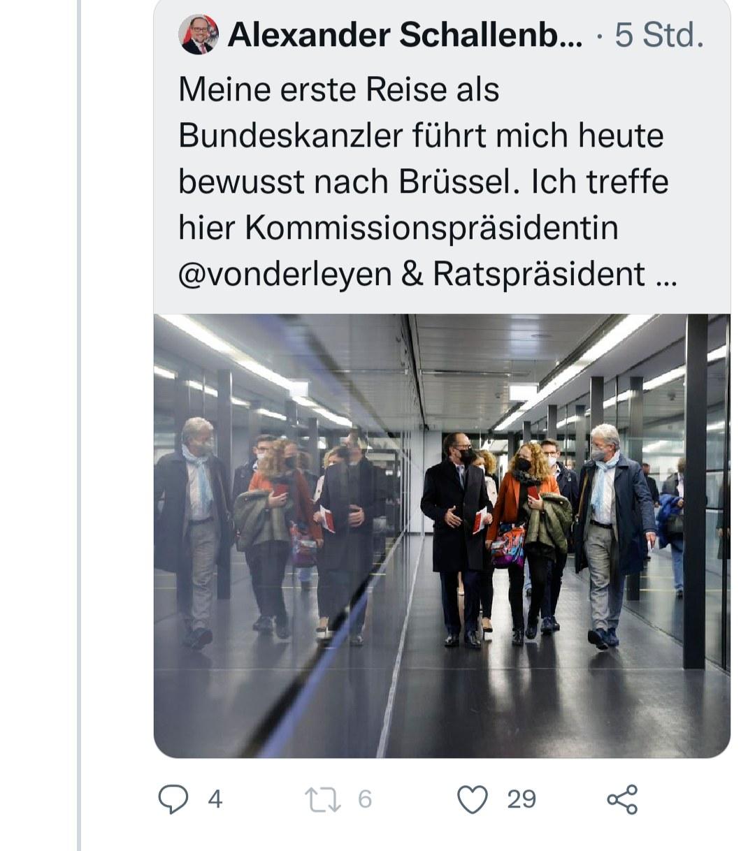 Kurz danach ist der Tweet ausgetauscht worden mit Schallenberg als Twitteranten. Es geht drunter und drüber in der aufgeblähten Medientruppe im Bundeskanzleramt.