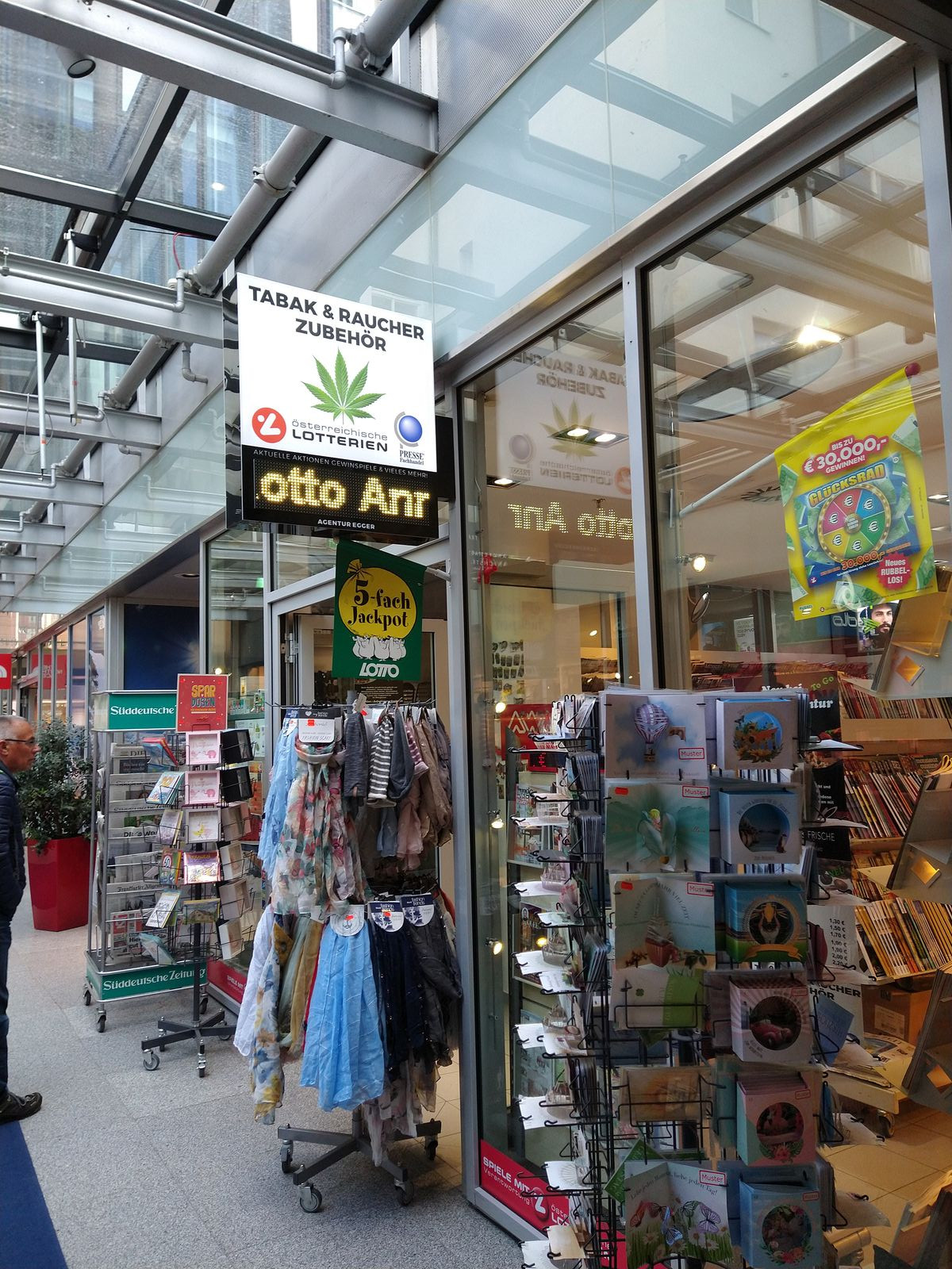 Auf der Suche nach einem aktuellen Exemplar des in Innsbruck (mit seinem grünen Bürgermeister) anscheinend ausverkauften PROFIL bin ich heute in den "Rathausgalerien" bei dieser Trafik gelandet. Die von der FPÖ und der ÖVP gegen die GRÜNEN fortgesetzt ausgesprochene Warnung: "Wenn die an die Macht kommen, dann erlauben sie 'Haschtrafiken'", also doch nicht ganz unbegründet gewesen.