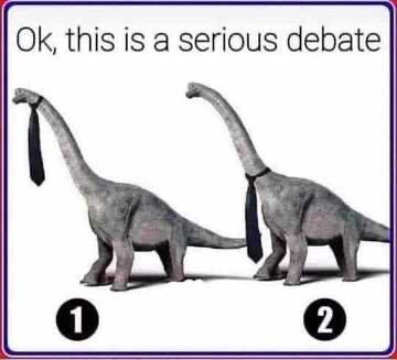 Wo steht, dass es ein Schlips ist und kein Latzl? Also Bild 1 das richtige, weil der Dino ordentlich Sappert beim Essen.