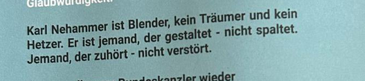 Also es kommt hier nicht so rüber, aber wenn ich dieses Plakat von Nehammer im freien Raum sehe,