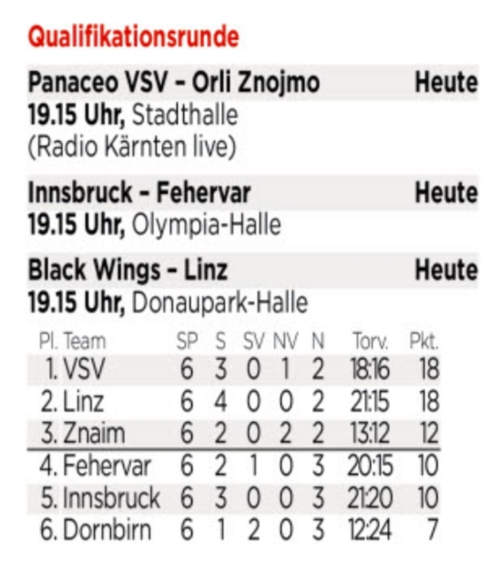 Das absolute Highlight in der Qualirunde heute ist das Auswärtsspiel der Linzer. Die müssen im Donaupark gegen die Black Wings ran.