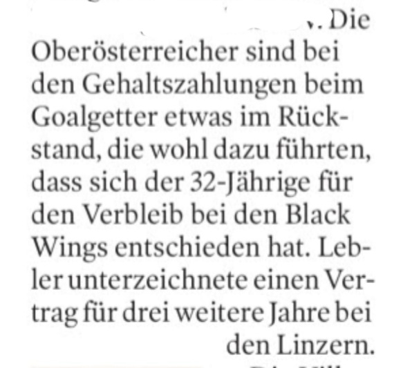 Setzinger beendet übrigens seine Karriere. Diese Spekatulationen kann man nun auch beiseite legen.