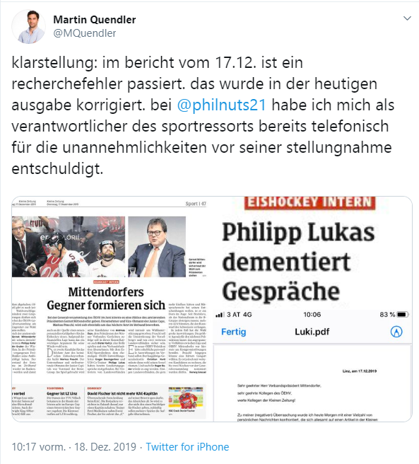 So sehr die KLZ eigentlich besser ist als die Krone oder gar Bild - das Eishockey Resort ist wirklich katastrophal und das nicht erst seit den jüngsten Artikeln. Offensichtlich kann man das auch nicht an der Person Quendler allein festmachen.
