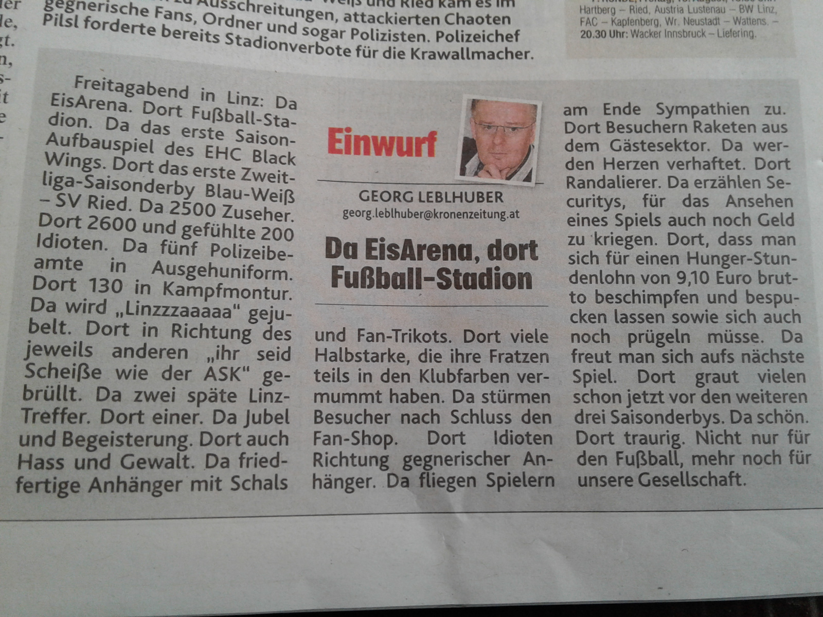 Journalismus ohne Verstand, Tiefengang und Ausgewogenheit - Eishockeyjournalismus a'la Kleine Zeitung halt.