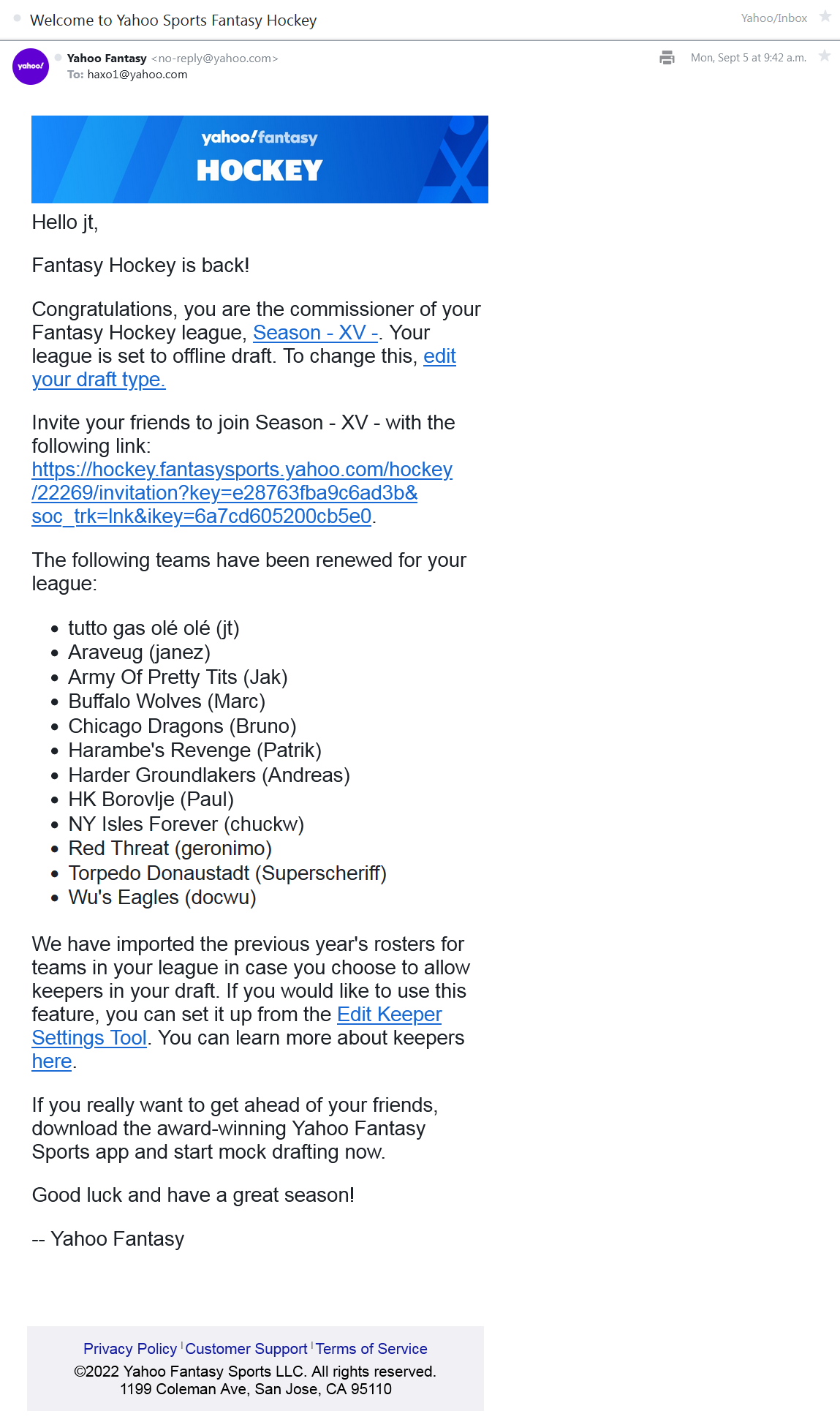 Ja, ich hab die Liga am 5. September renewed und dazu ein E-Mail von Yahoo bekommen: