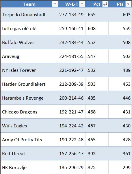 Buffalo Wolves ist natürlich Teil unserer Original Six, blacky3 , der uns seit der Gründung der Dynasty verlässlich die Treue hält.