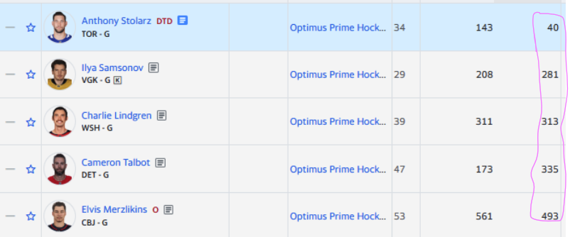 wie kann man wissen ob ein goalie in den top 15 des teams ist?