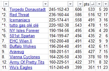 Einspruch! An die letzte Draftposition gehört doch der Stanley-Cup-Sieger/Meister. Dann kommt der Vize gefolgt von den Halbfinalisten, PO-Teilnehmern und schließlich den Non-PO-Teams. Oder handhaben wir das anders als in der NHL?