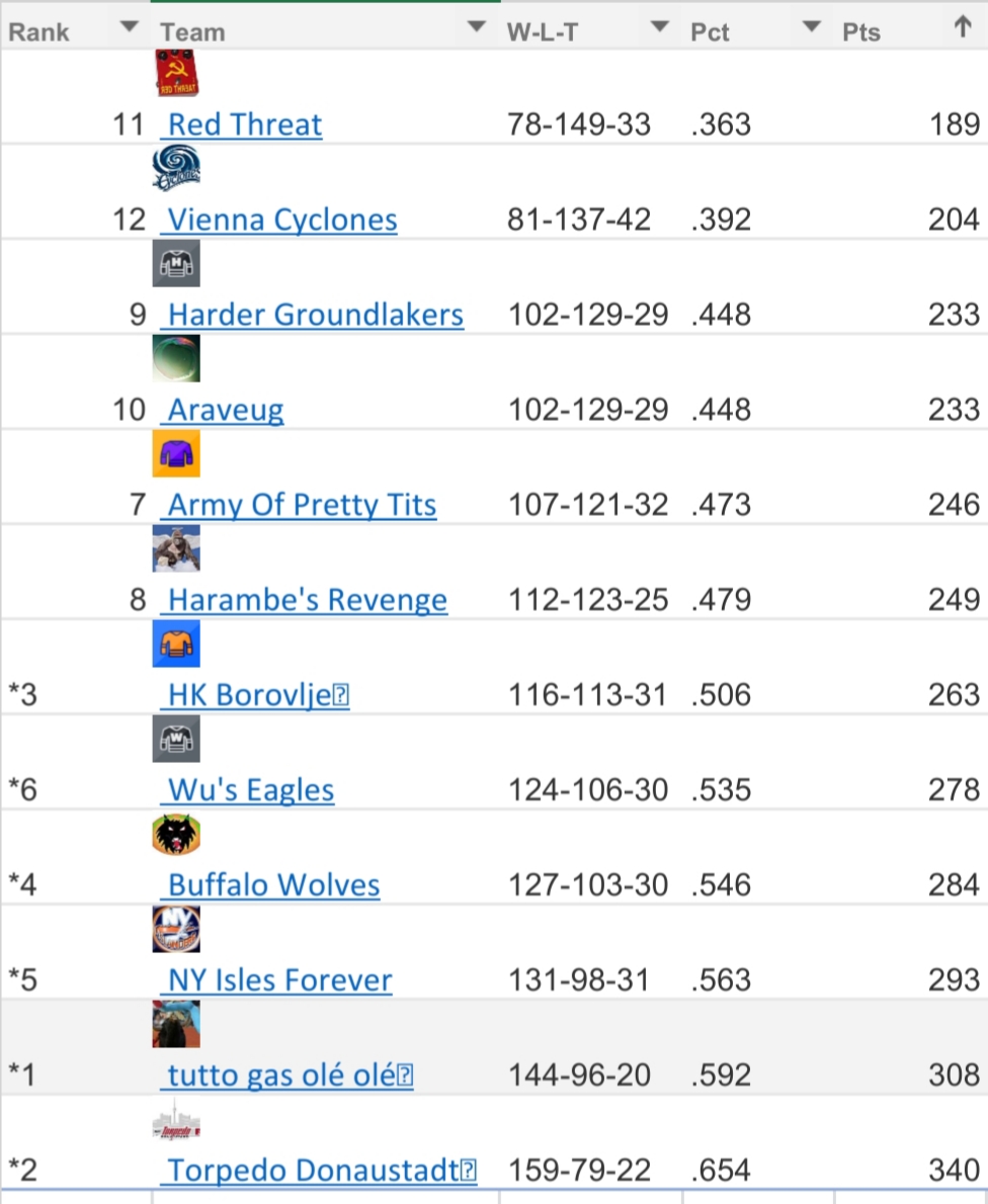Unten noch die gestürzte GD Tabelle als Basis für die Draftreihenfolge.