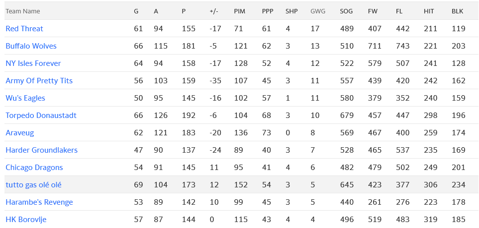 Auch wieder mal ein kleiner Stat - Zwischenbericht aus der Liga:
