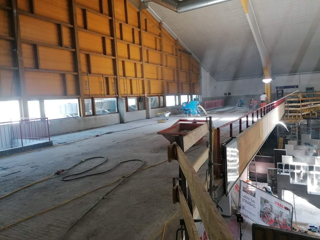 Eine Wohltat endlich verschwindet dieses grausliche Pustertalgelb :) von den Säulen und Trägern, die Betonstufen für die Tribünen stehen auch schon, auch wenn es leider keine neue Neubauvariante ist, freue ich mich trotzdem auf die neue Halle