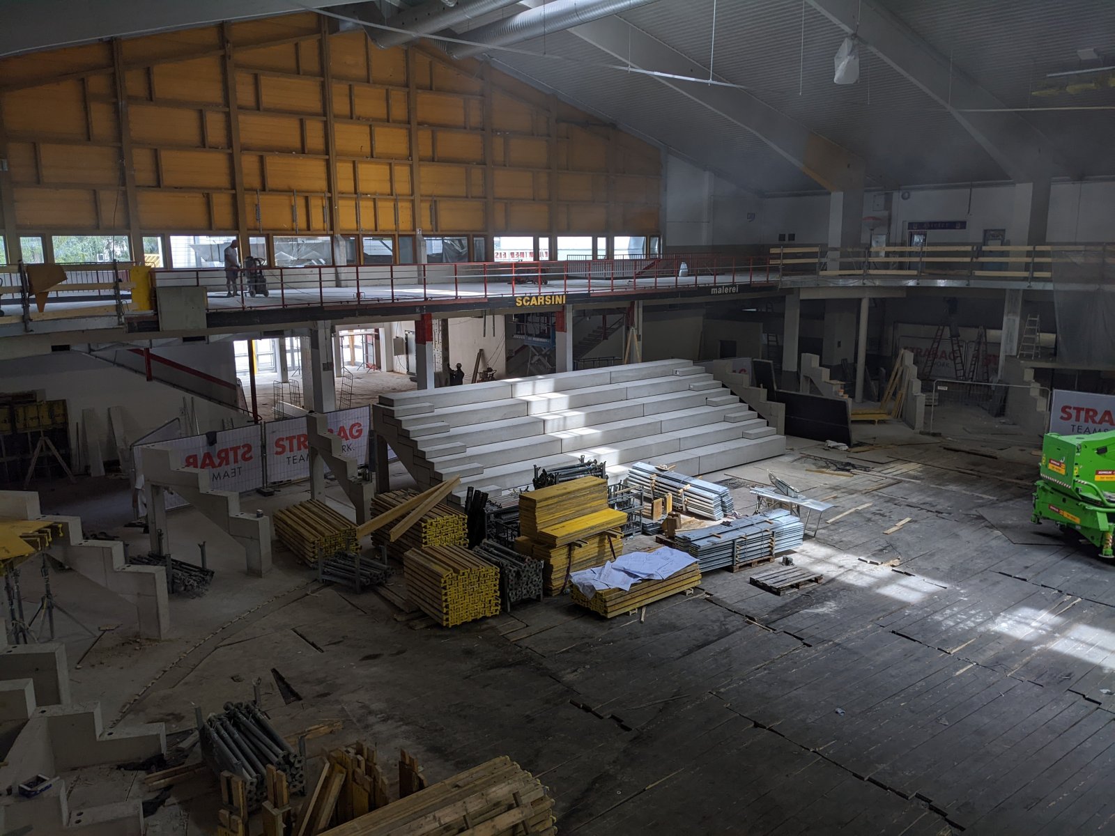 Jetzt kommen aber zusätzliche Fluchtwege(stiegen). Auch neue WC Anlagen werden gebaut zb auch eine separate WC für die Auswärtsfns!