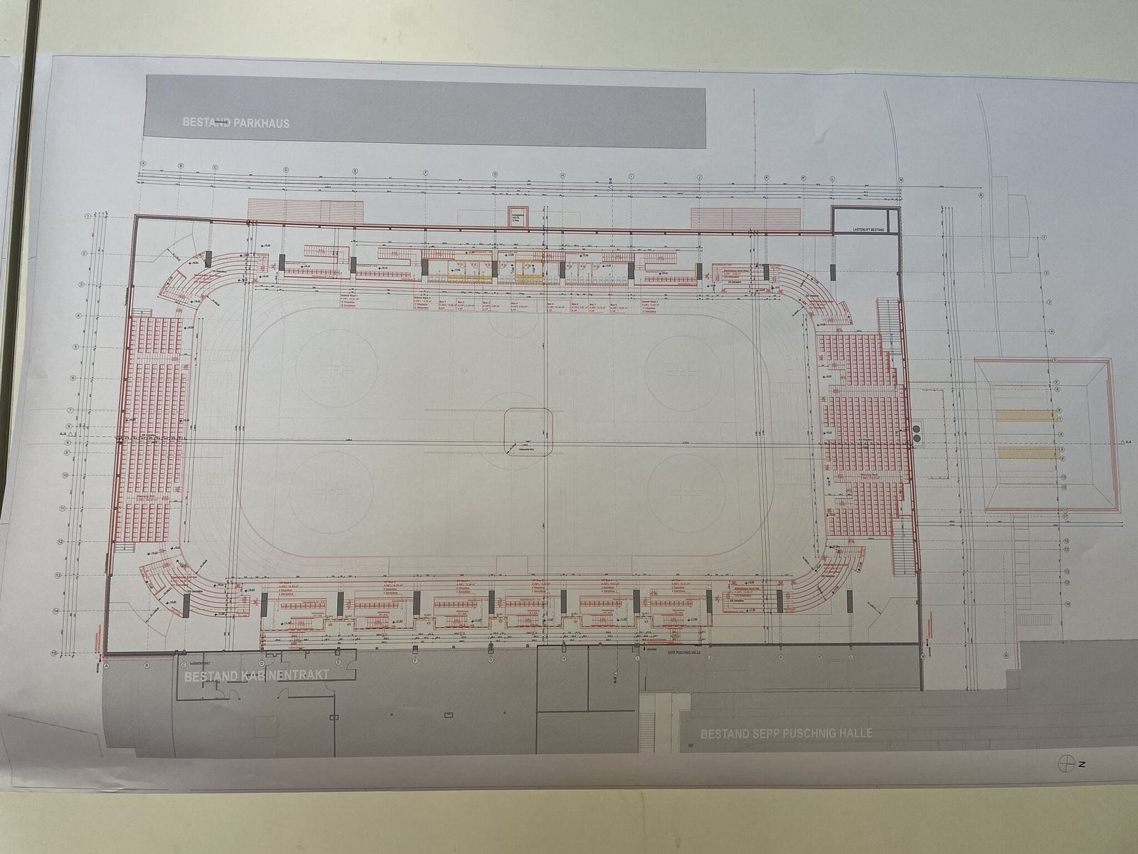 Auf den neuen Plänen sind ebenfalls im Unterrang Ost-West 6 Sitzreihen geplant und Nord-Süd 7 Reihen