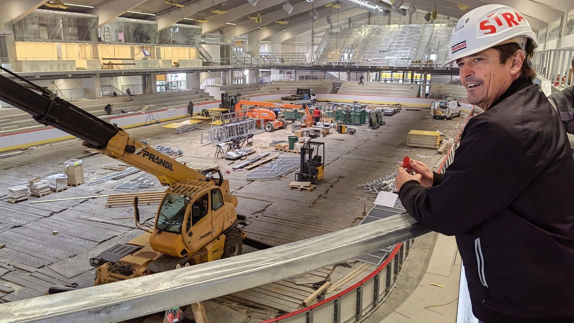 In der Halle herrscht unabhängig davon ein emsiges Treiben. Zu Spitzenzeiten wuselte es nur so an engagierten Fachkräften, fast alle KAC-Fans, die sich bei überraschenden Besuchen der Eishockey-Profis sogar Autogramme auf ihre Schutzhelme geben ließen. "Bis zu 60 Menschen arbeiteten gleichzeitig an der Fertigstellung. Ich muss schon jetzt ein großes Lob an die Firmen aussprechen", hält Kulis fest. Banden (mit klarerweise roter Umrandung), Spielerbänke und Plexiglasscheiben werden in den nächsten Tagen aufgebaut und auch die Bestuhlung der 4400 Zuschauer umfassenden Halle, ohne jedwede Sichteinschränkung.