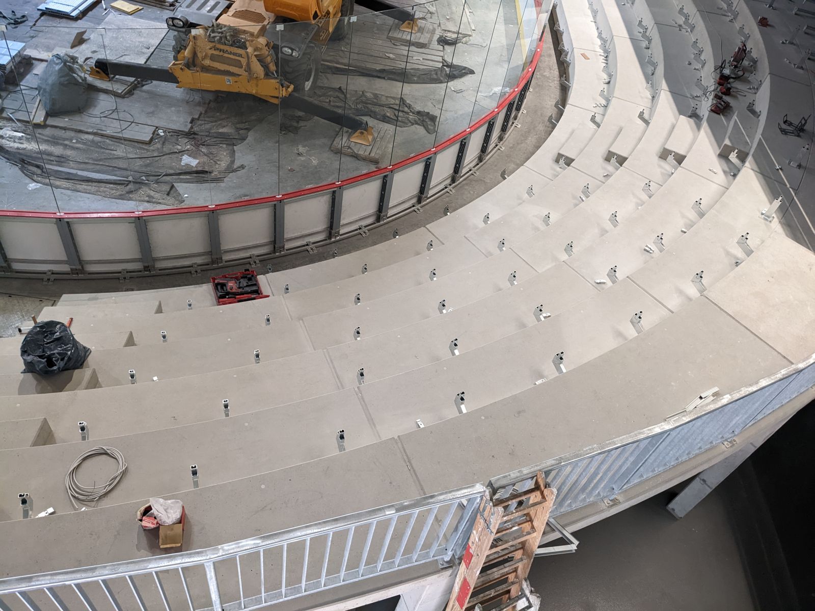 Jetzt erst bemerkt, dass die gesamte Konstruktion im Oberrang aus Metall ist,- gespannt wie sich das “als Klangkörper” Verhalten wird.