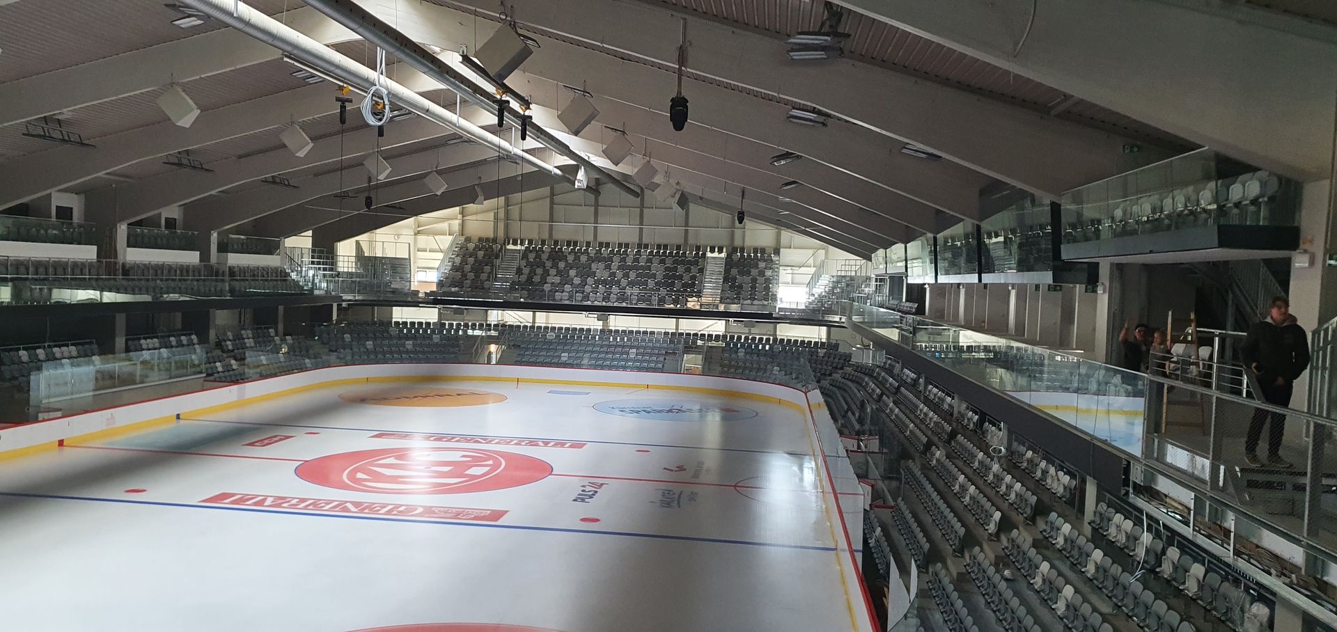 Hinter der Tribüne auf dem Gang selbst, ist ungefähr doppelt so viel Platz zum Gehen wie bei der alten Konstruktion.
