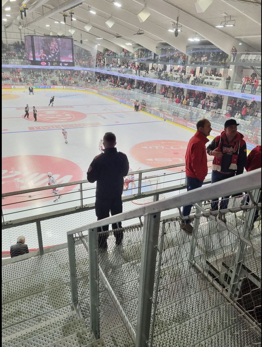 Die sicht war in der alten Halle besser. Sorry überall Metallbalken. Das Netz hinter dem Tor ist schwarz, den Fehler hst man vor 10 Jahren schon einmal ausgebessert. Da muss noch viel gemacht werden. Bin nicht überrascht, ist halt kac typisch