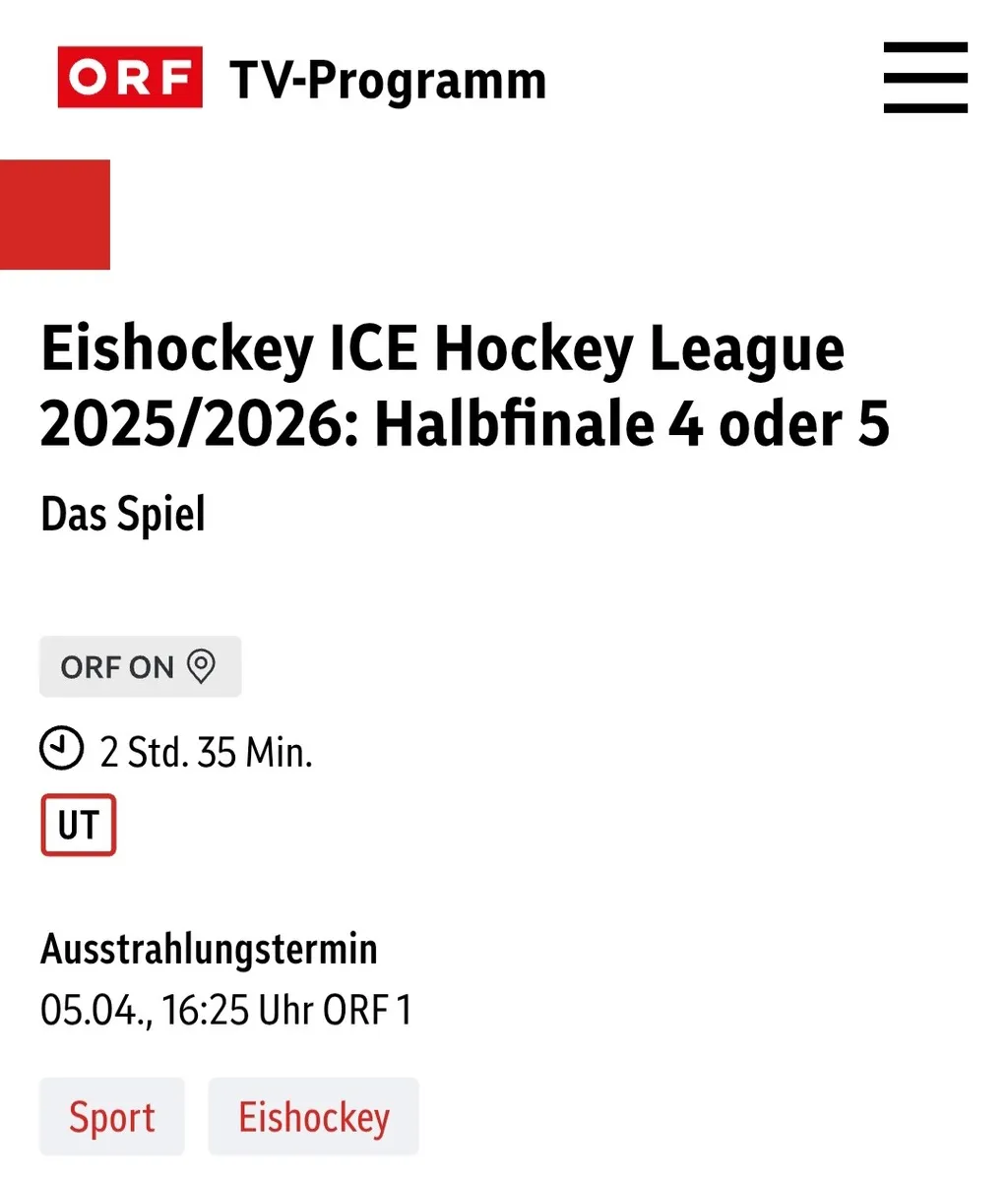Wenn zumindest eine Serie über 6 Spiele geht, überträgt ORF Sport + das 1.Finale mit Spielbeginn um 20 Uhr am 15.4.2026🤗👊