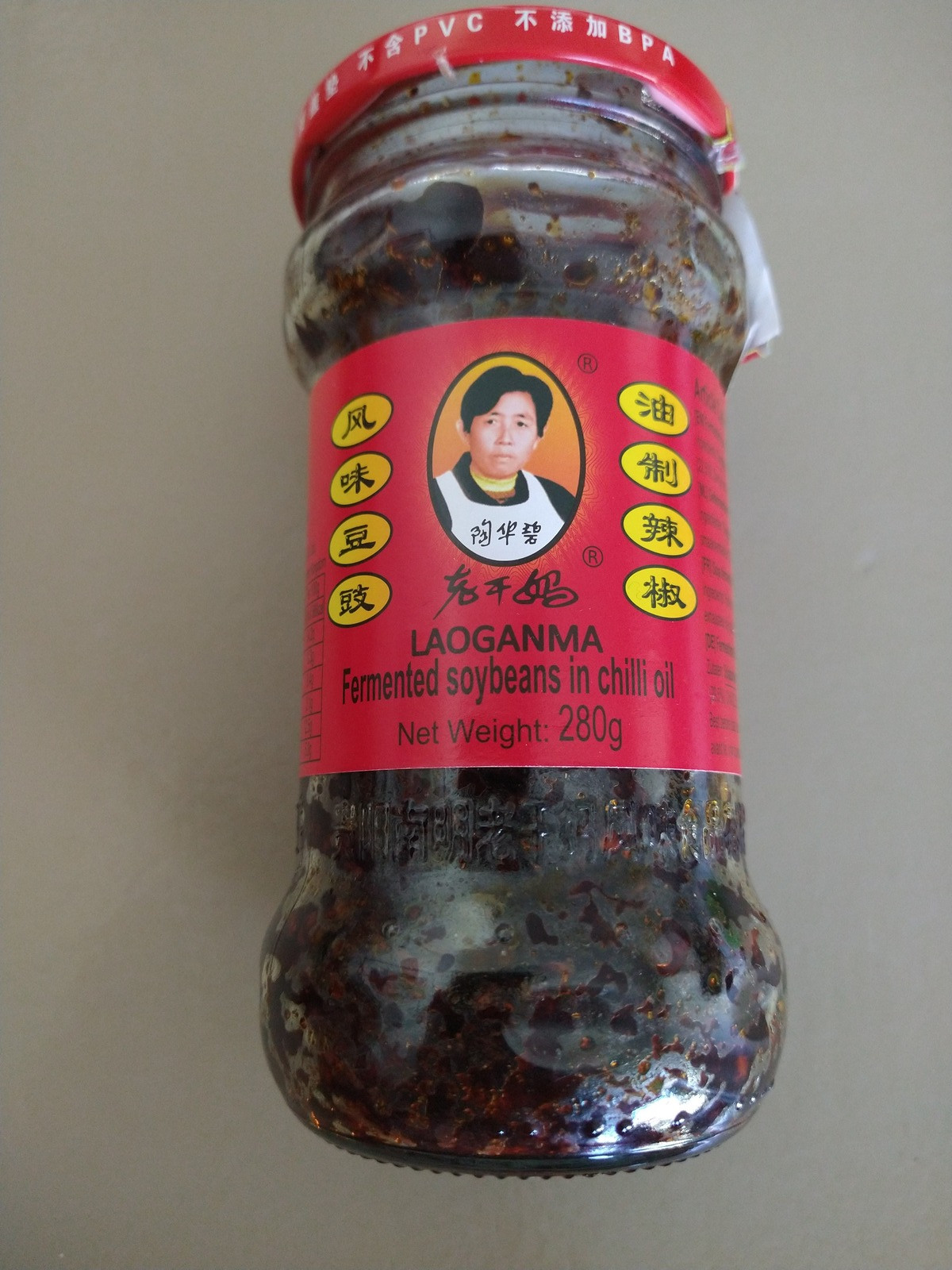 Empfehlung. 200 Gramm getrocknete Sojabohnen (sagenhaft, welche Menge "schlampiger Tofu" daraus unter Zugabe von 1 Liter Wasser nach dem Pürieren und Kochen daraus wird), jede Menge g'schmackiges grünes Gemüse (habe Kohlrabiblätter genommen), Reis und fertige Paste aus fermentierten Soyabohnen in Chilli-Öl, wenn man sich die Mühe der Zubereitung einer solchen Sauce sparen will: Sehr gut.