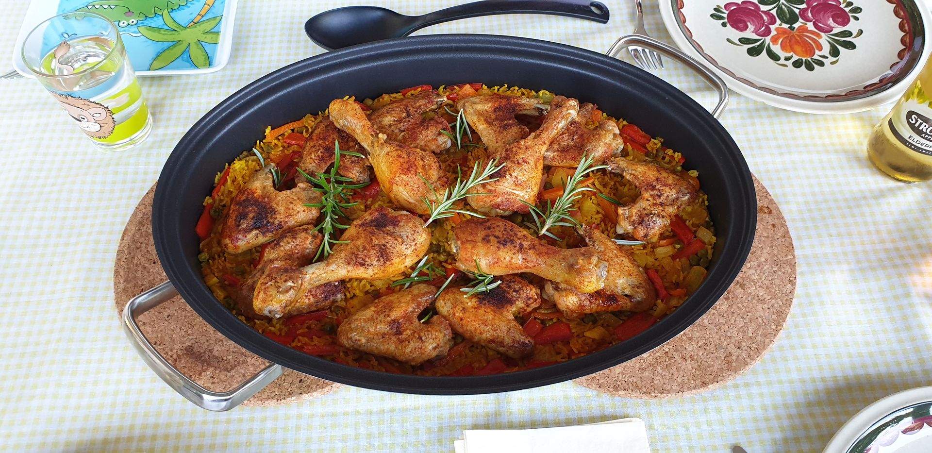Auf mehrfache Anfrage der rennstalleigenen Produktion: Paella mit Huhn.
