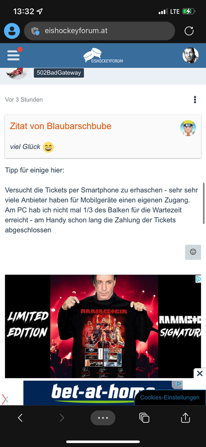 So - befinde mich mal im virtuellen Warteraum für Rammstein-Tickets