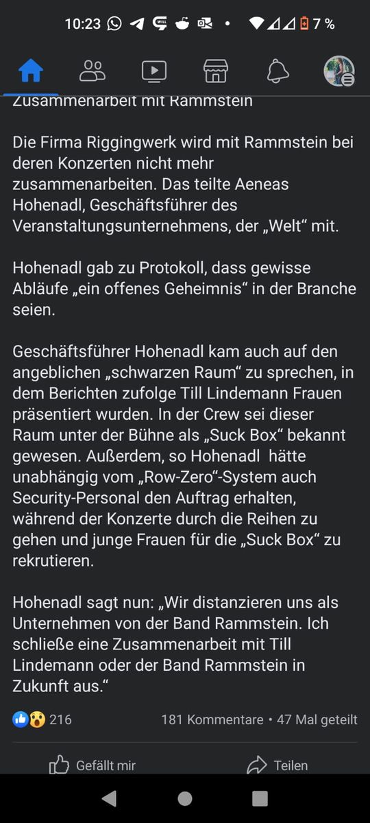 In den vergangenen zwei Wochen gab es zahlreiche Frauen, die Lindemann sexuellen Missbrauch vorgeworfen haben. Es war die Rede von einer Sex-Rekrutierungsmaschinerie für Lindemann. Rammstein dementierten die Vorwürfe, Lindemanns Anwaltsteam drohte mit rechtlichen Konsequenzen (was der Deutsche Journalisten-Verband heftig kritisierte). Mittlerweile wird von der Berliner Staatsanwaltschaft in zwei Fällen gegen Lindemann ermittelt, außerdem liegen mehrere Strafanzeigen gegen den Sänger vor.