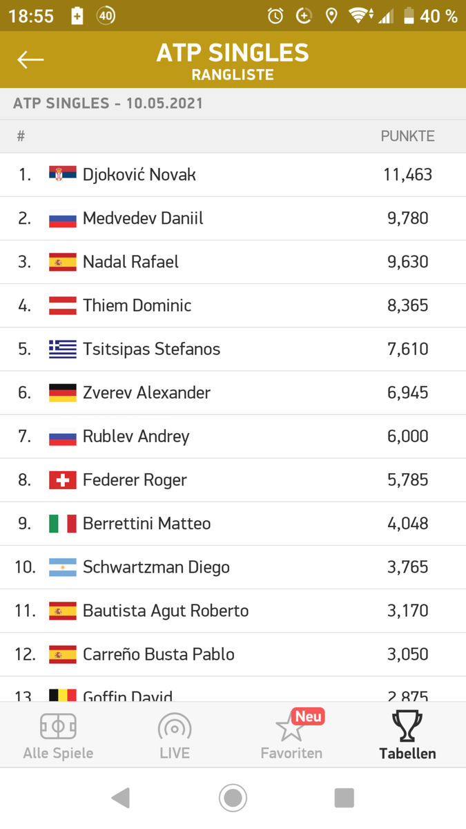 Hast Du Dir schon jemals die ATP Rangliste angesehen?