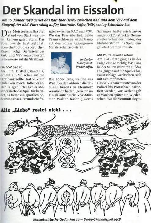 "Denn nun agierten die Linzer völlig kopflos, hatten nur noch eines im Sinn: dem KAC weh zu tun. Vor allem Ralph Intranuovo suchte seine Chance auf Rache für die schwere Verletzung und bekam sie auch. Knapp zwei Minuten vor Ablauf des zweiten Drittels kam es zu einer Massenschlägerei, in der zuerst Paul Kruse praktisch gegen alle KAC Spieler, die ihm in den Weg kamen Amok lief. Am Rande dieser Schlägerei entwickelte sich auch noch ein Kampf zwischen Ralph Intranuovo und dem Finnen Kaipainen auf Seiten des KAC, wobei Intranuovo wohl davon ausgegangen war, Jaako Niskavaara unter sich begraben zu haben. Intranuovo konnte nur mit vereinten Kräften vom Finnen losgeeist werden und beruhigte sich noch immer nicht. Zu tief sass offensichtlich die Rachelust nach seiner Verletzung."