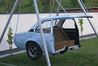 schaukelt an Dachrinnen die an mechanischen Autos montiert sind