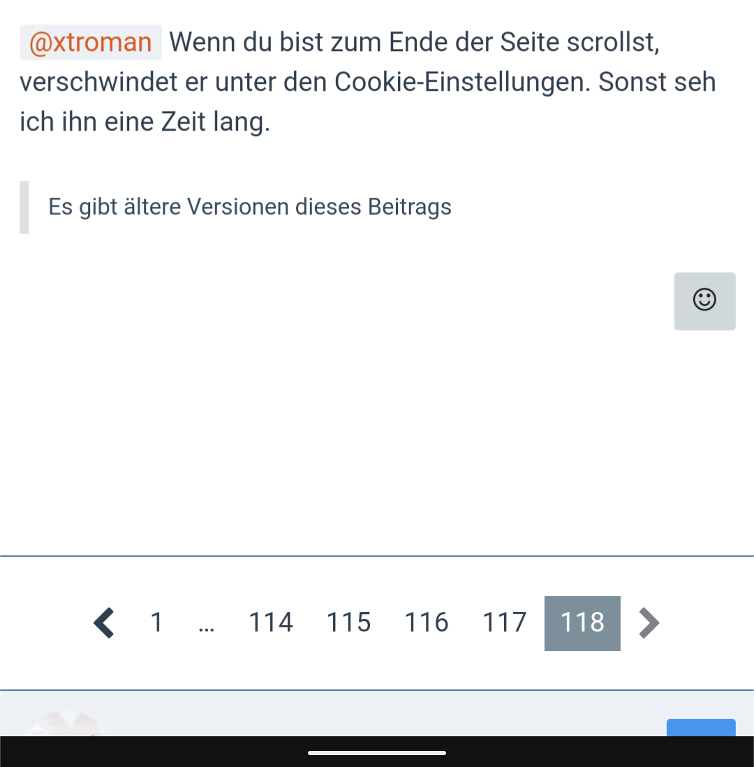 xtroman Wenn du bist zum Ende der Seite scrollst, verschwindet er unter den Cookie-Einstellungen. Sonst seh ich ihn eine Zeit lang.