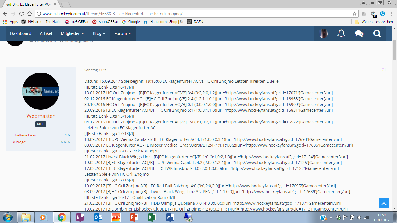 Warum schauen die Spielankündigungen und auch die Kurzeintragungen zu den jeweiligen Ergebnissen vom Webmaster bei mir immer so aus?:
