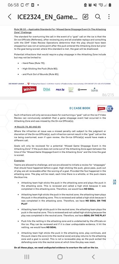 Laut Spielbericht ist der Treffer von Hochegger wegen eines hohen Stockes - ganze 16 Sekunden vor dem Treffer - nach Review aberkannt worden.