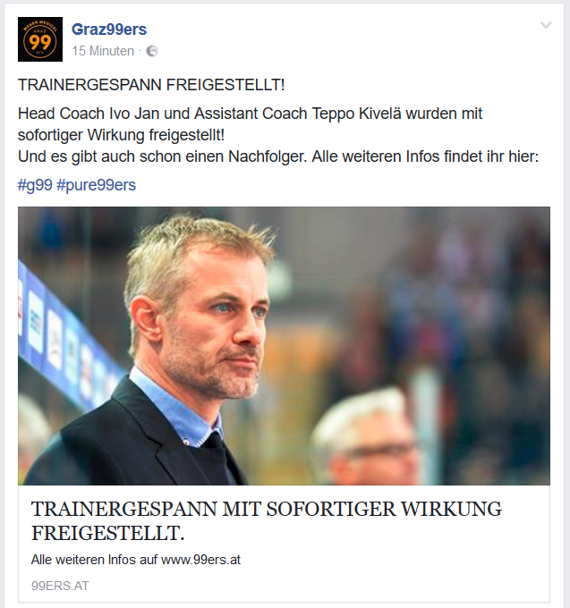 Plötzlich sieht man am Bild, das die 99ers auf Facebook veröffentlichten, warum Trainer Ivo Jan so plötzlich freigestellt wurde. Er ist ein White Walker!