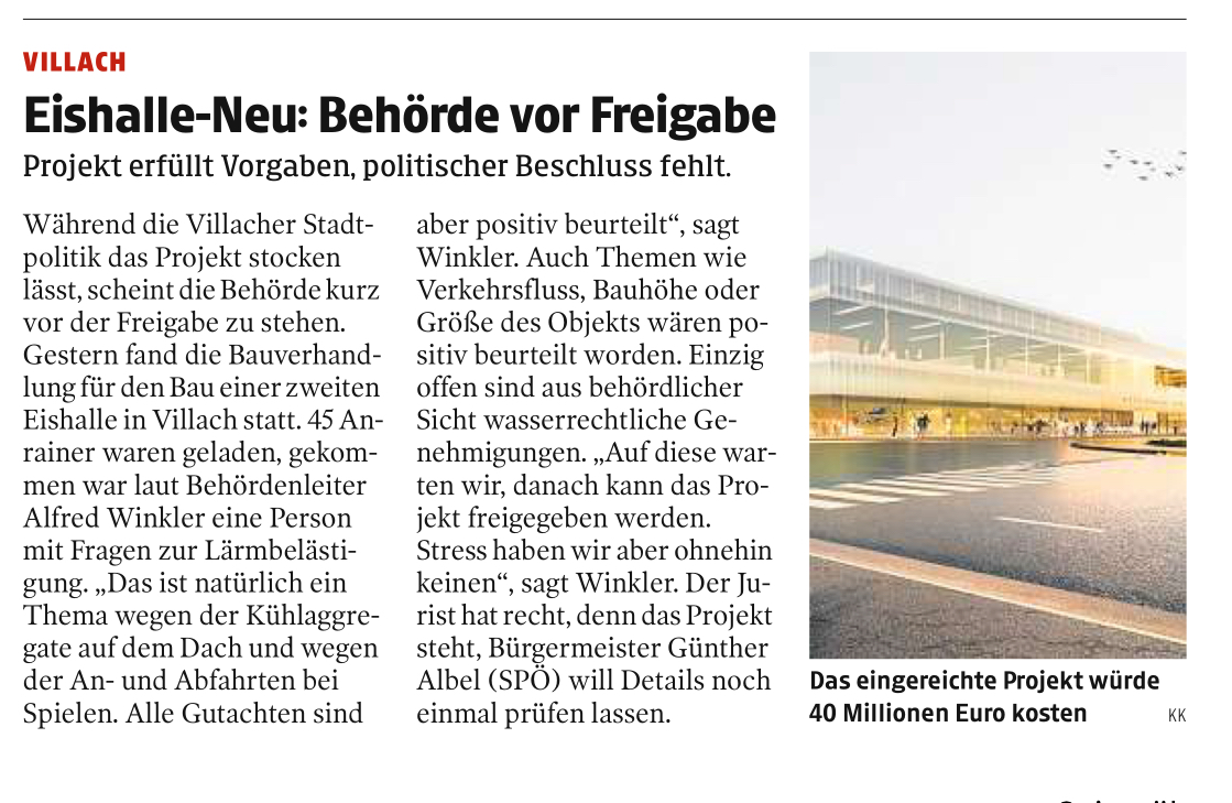 Naja das Thema neue Halle gibt es doch schon einige Jahre und nun sollen auf einmal die Bürger befragt werden? Ist ja schön, dass VE sich ihre Gedanken macht, sind halt nur eine leise Minderheit im Stadtrat die jetzt der Mehrheit wieder ihre Meinung aufdrücken wollen? Für die Entwicklung von Villach als Eishockey Standort kann es imho keine zwei Meinungen geben.