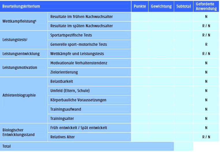 Das Thema Testungen wäre unerschöpflich, und würde den Rahmen hier sprengen. Die Pallette reicht hier von recht einfachen Tests über bestehende Testbatterien wie zum Beispiel von z&r bis hin zu Universitätssportwissenschaftlichen Tests mit Langzeitstudien eben unter den bekannten Aspekten der Objektivität Nachhaltigkeit Reliabilität und Valididät.