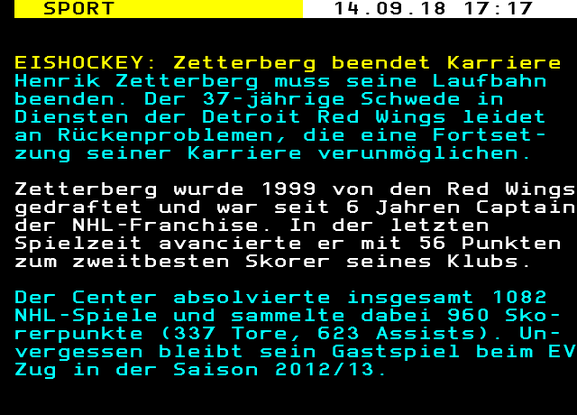 Marian Hossa bestätigt sein Karriereende;(. Ob er weiterhin auf der Verletzten Liste bleibt oder sein Vertrag getraded wird sich zeigen, nachdem sein Vertrag in 3 Jahren ausgelaufen ist,erwägt er eine Rückher zu den Blackhawks