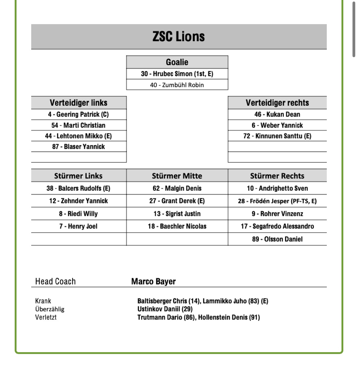 Bei Lausanne kommt der Kanadier Brendan Perlini für den Finnen Lauri Pajuniemi ins Team. Pajuniemi nimmt als überzähliger Ausländer auf der Tribüne Platz.