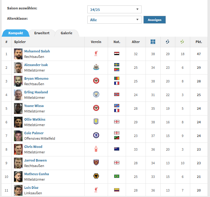 Er hat dies eine Saison beweisen wow, aber nicht International, hast du ja schön ausgelassen diese Stats, und ich meine auch die Jahre davor, interessant, dann wird die Liste nämlich ganz anders