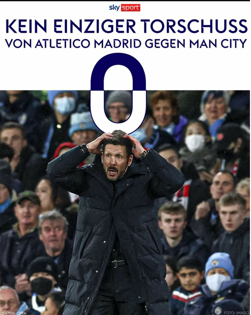 und weil du chancen von city angesprochen hast. nein, ganz klar nicht im minutentakt. aber in der zweiten hz hätte sich atleti nicht über ein zweites oder drittes beschweren können. und somit ist die defensivtaktik auch in frage zu stellen, wenn ich drauf hoffen muß das der gegner chancen liegen lässt. top wäre die nur wenn nix oder kaum was zugelassen würde.