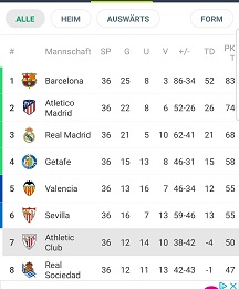 ich kann mir vorstellen das in der spanischen u. englischen tabelle der 7te platz deshalb nicht blau makiert ist weil es noch ausständige cup-spiele gibt. aber wie gesagt, um das habe ich mich noch nie wirklich gekümmert.