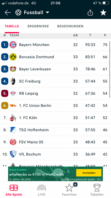Hmmm,… dann versteh ich die Tabelle nicht, oder liegt es am Finale des DFB Pokals?